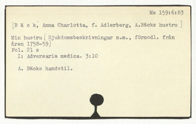 Min hustru [Sjukdomsbeskrivningar m.m., förmodl. från åren 1758-59]