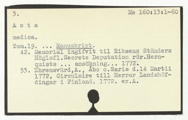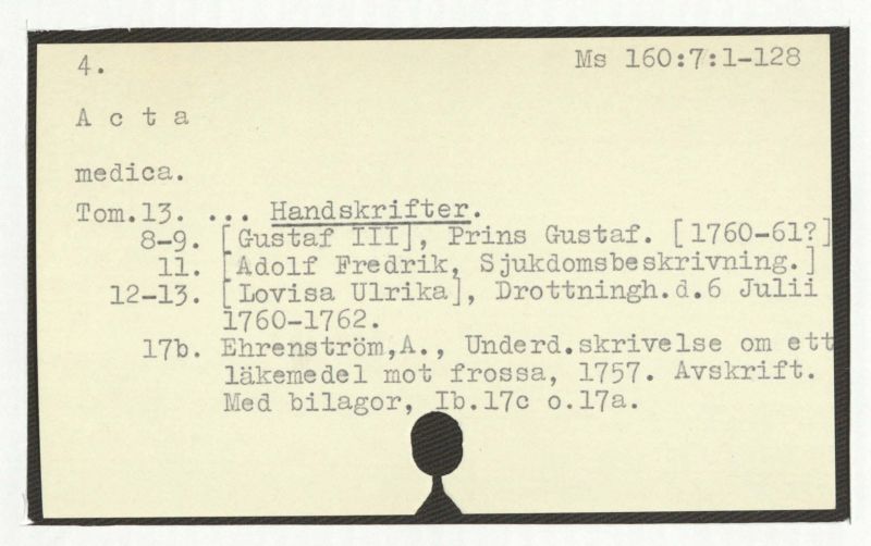 17b. Ehrenström,A., Underd.skrivelse om ett läkemedel mot frossa, 1757. Avskrift. Med bilagor, Ib.17c o.17a.