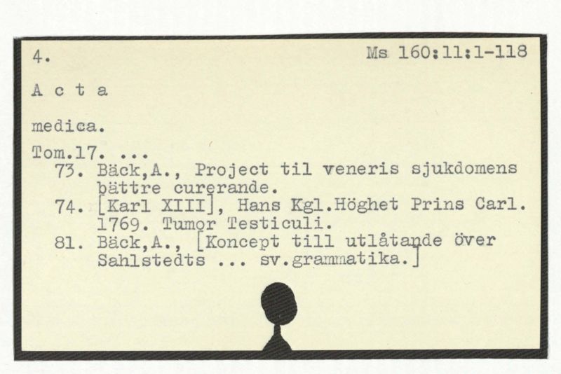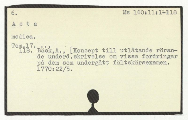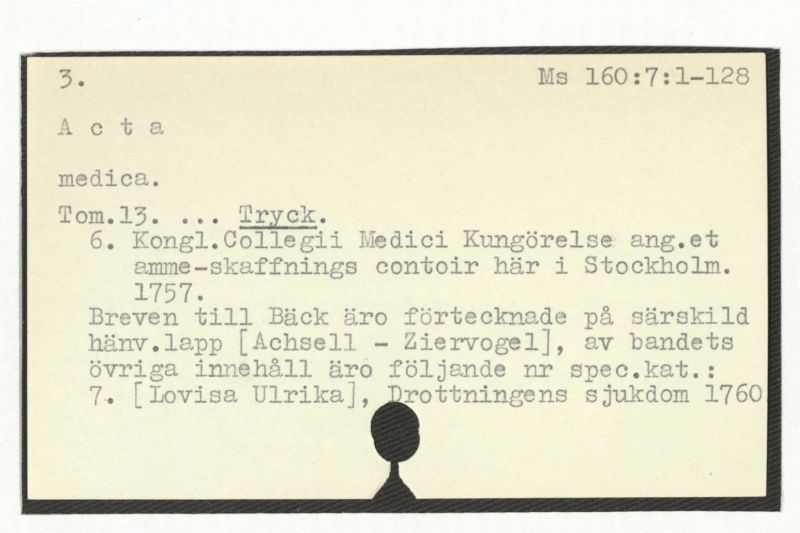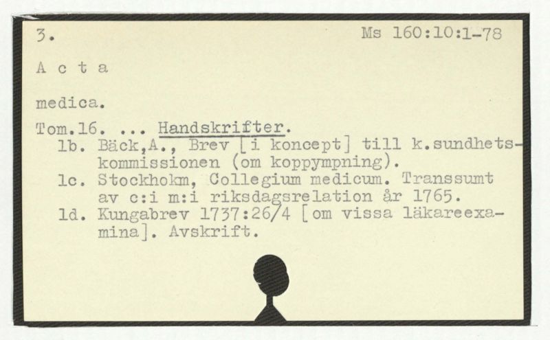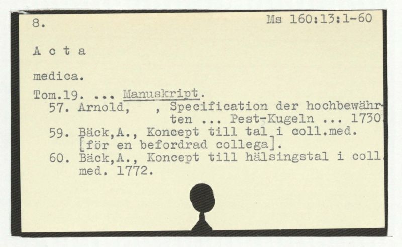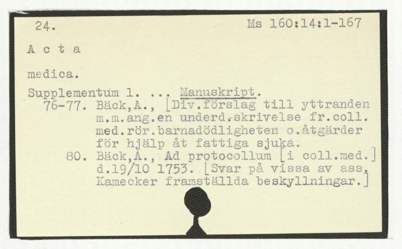 80. Bäck, A., Ad protocolum [i coll.med.] d.19/10 1753. [Svar på vissa av ass. Kamecker framställda beskyllningar.]