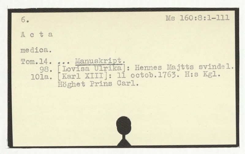 10la. [Karl XIII]: 11 octob.1763. H:s Kgl.