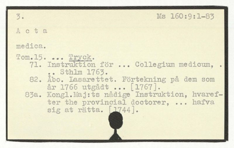 71. Instruktion för ... Collegium medicum, ... Sthlm 1763.