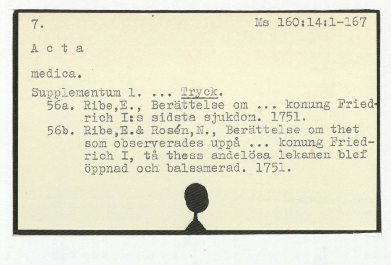 56a. Ribe, E., Berättelse om ... konung Friedrich I:s sidsta sjukdom. 1751.