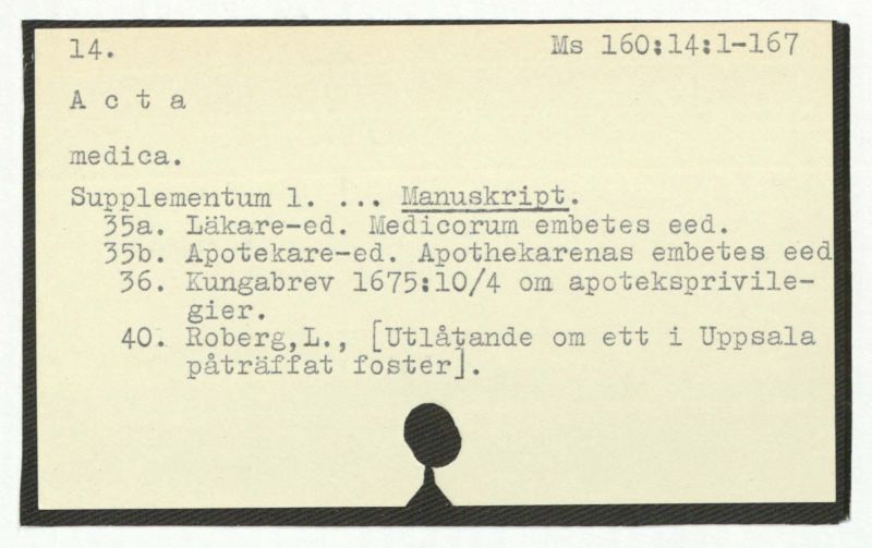 40. Roberg, L., [Ut lätande om ett i Uppsala pätraffat foster].