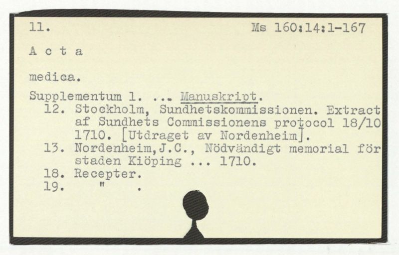 12. Stockholm, Sundhetskommissionen. Extract af Sundhets Commissionens protocol 18/10 1710. [Utdraget av Nordenheim]