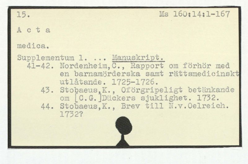 43. Stobaeus, K., Oförgripeligt betänkande om [C.G.]Dückers sjuklighet. 1732.
