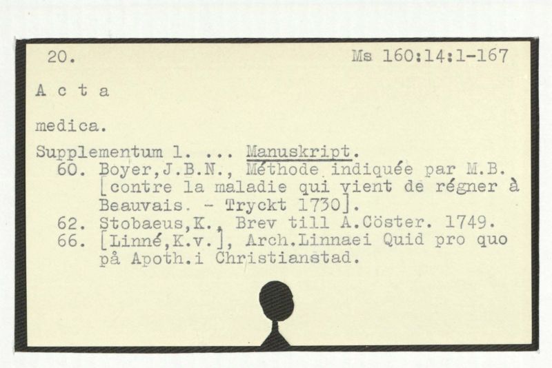 66. [Limné, K.v.], Arch. Linmaei Quid pro quo på Apoth. i Christianstad.
