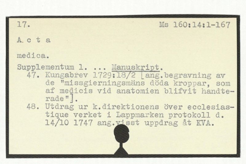 47. Kungabrev 1729:18/2 [ang.begravning av de "missgierningsmäns döda kroppar, som af medicis vid anatomien blifvit handte-rade"].