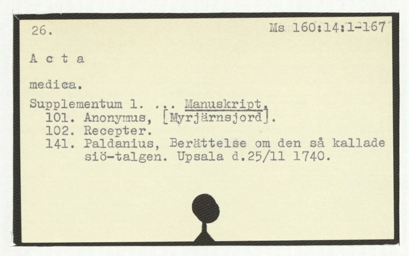 141. Paldanius, Berättelse om den så kallade siö-talgen. Upsala d.25/11 1740.