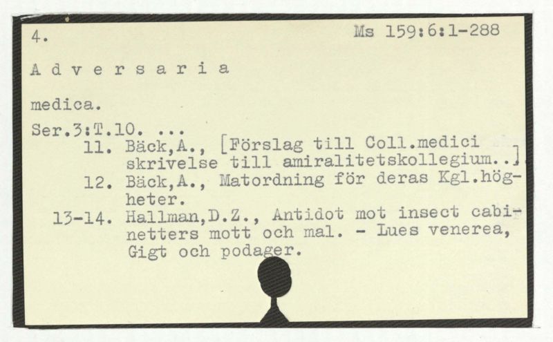13-14. Hallman,D.Z., Antidot mot insect cabi-netters mott och mal. – Lues venerea, Gigt och podager.