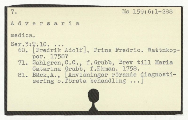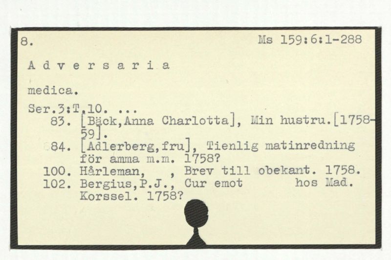 102. Bergius, P.J., Cur emot hos Mad. Korssel. 1758?