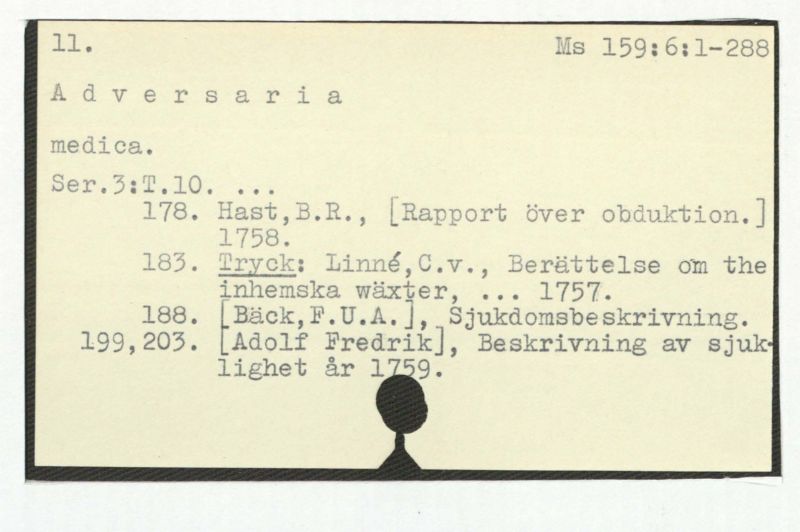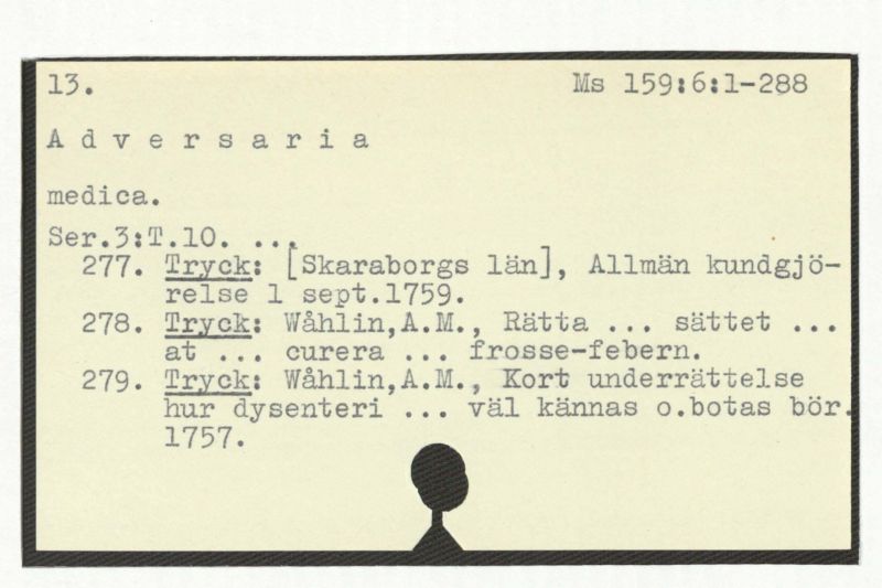 279. Tryck: Wåhlin,A.M., Kort underrättelse hur dysenteri ... väl kännas o.botas bör. 1757.