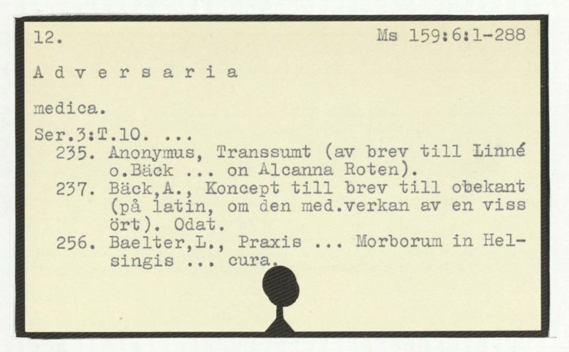 235. Anonymus, Transsumt (av brev till Linné o.Bäck ... on Alcanna Roten).