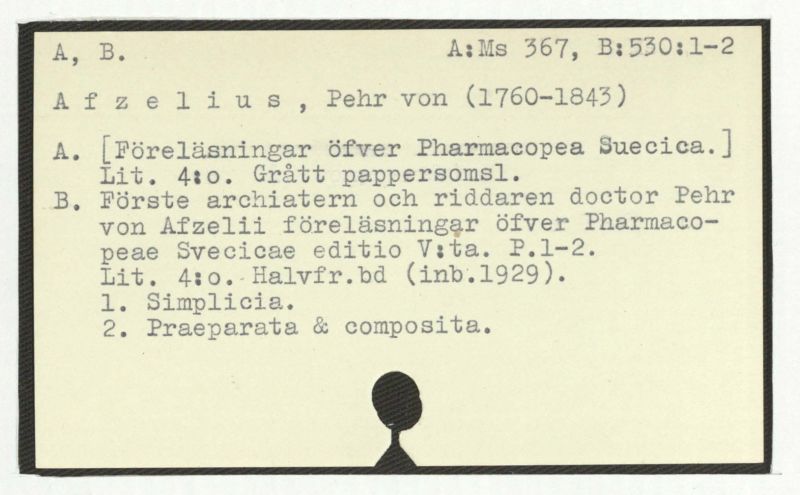 A. [Föreläsningar öfver Pharmacopea Suecica.]
