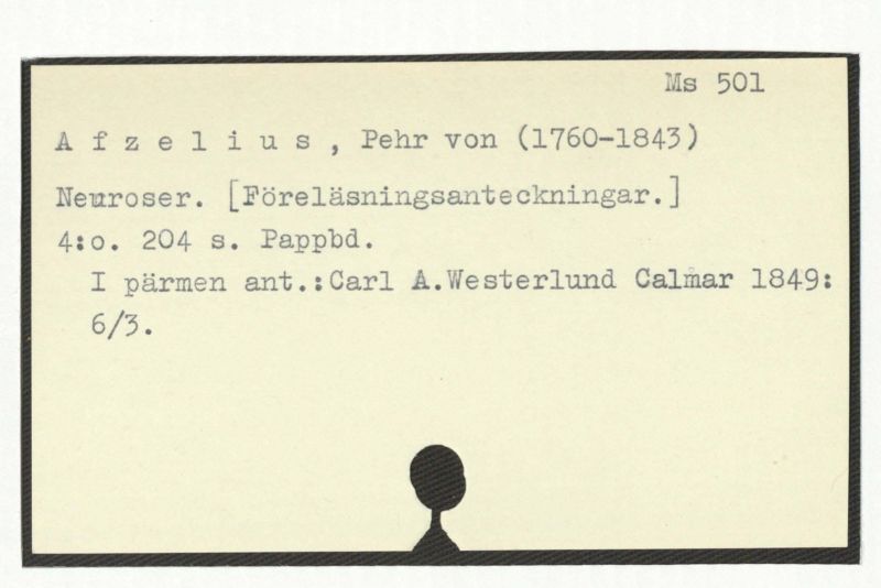 I pärmen ant.:Carl A. Westerlund Calmar 1849:
