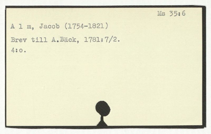 I brevet 35:7:2 (1781:15/9) bilaga av Bäck.
