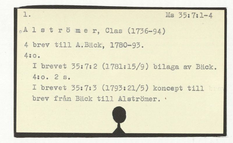 I brevet 35:7:3 (1793:21/5) koncept till brev från Bäck till Alströmer.