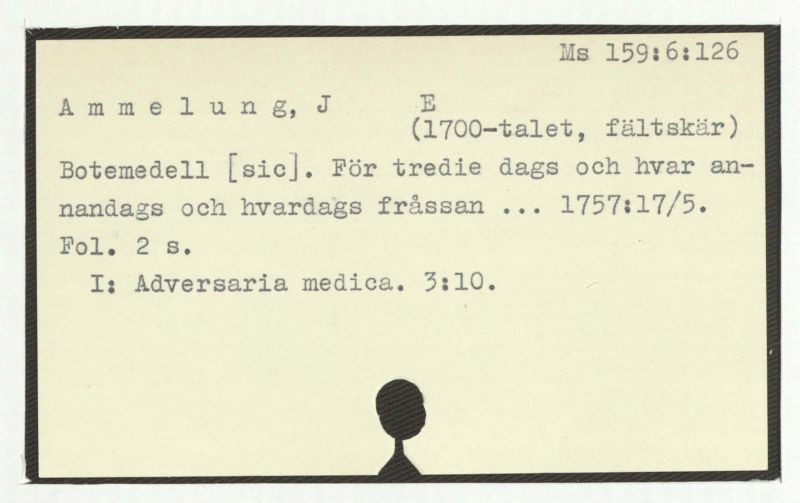126. Ammelung, J.E., Botemedell. För ... fråssan. 1757.