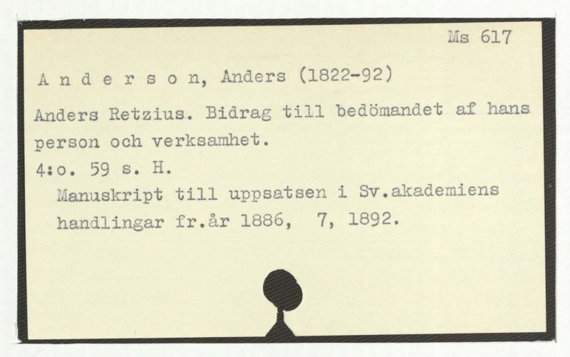 Anders Retzius. Bidrag till bedömandet af hans person och verksamhet.