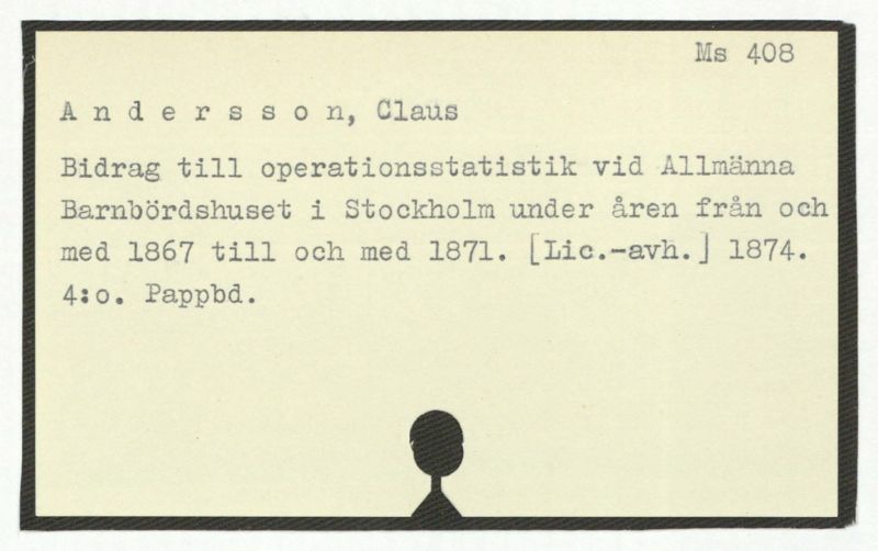 Bidrag till operationsstatistik vid Allmäna Barnbördshuset i Stockholm under åren från och med 1867 till och med 1871. [Lic.--avh.] 1874.