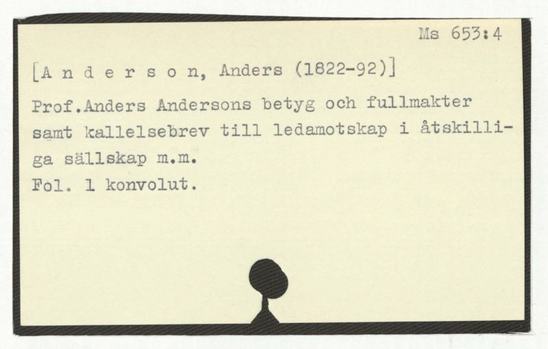 Prof.Anders Anderssons betyg och fullmakter samt kallelsebrev till ledamotskap i åtskilliga sällskap m.m.