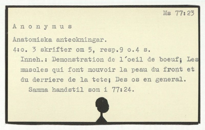 Inneh.: Demonstration de l'oeil de boeuf; Les muscles qui font mouvoir la peau du front et du derriere de la tete; Des os en general.