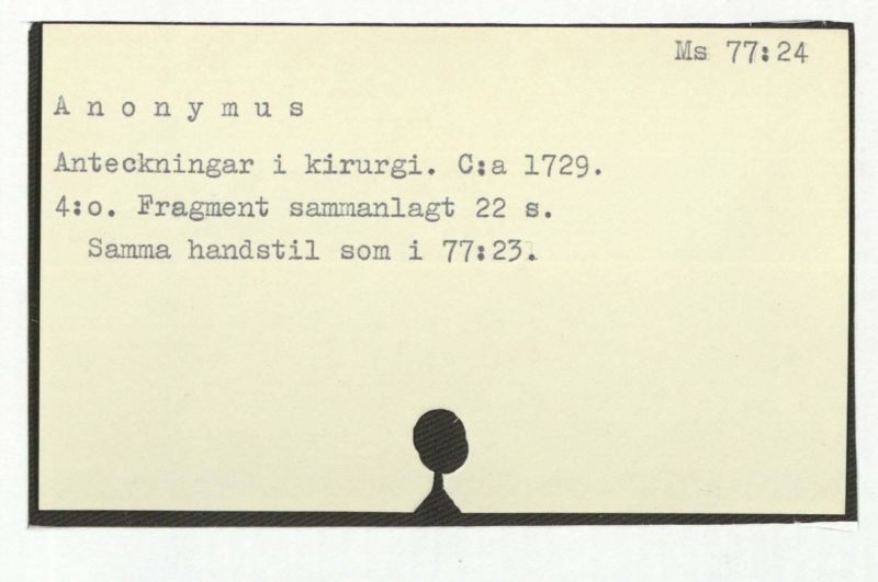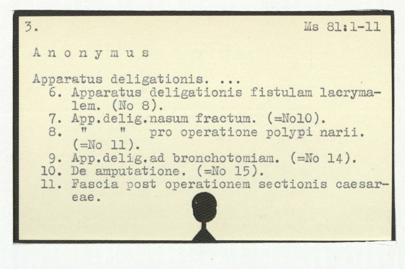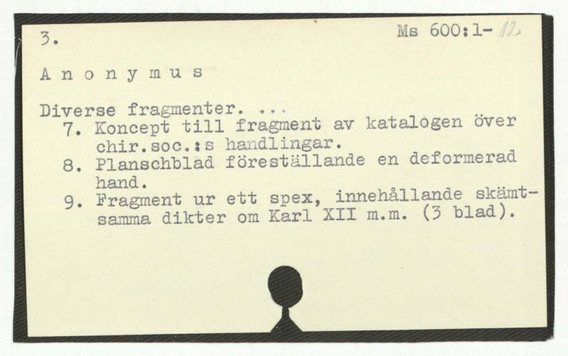 7. Koncept till fragment av katalogen över chir.soc.:s handlingar.