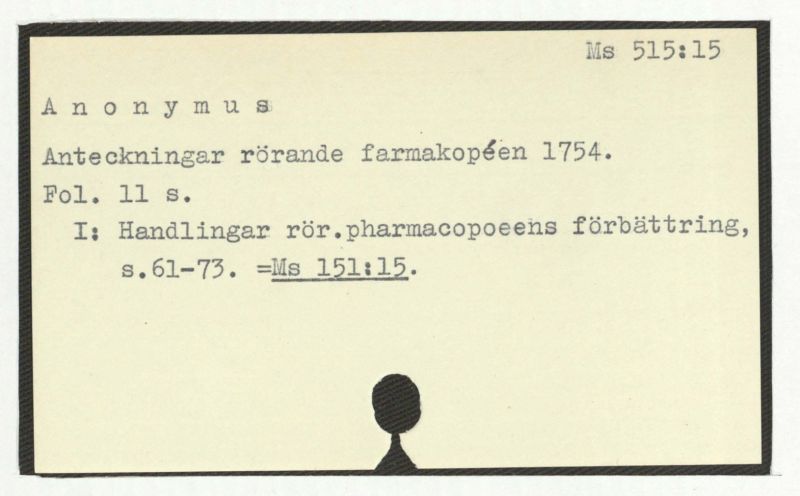 I: Handlingar rör. pharmacopoeens förbättring, s.61-73. =Ms 151:15.