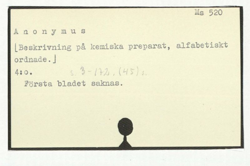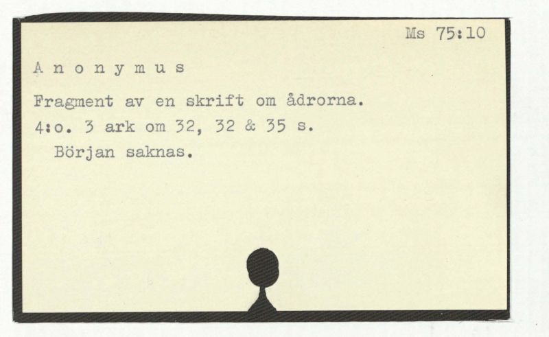 Lit.4:o. 14 lösa ark å 8 s. Titel och något ark i slutet saknas.
