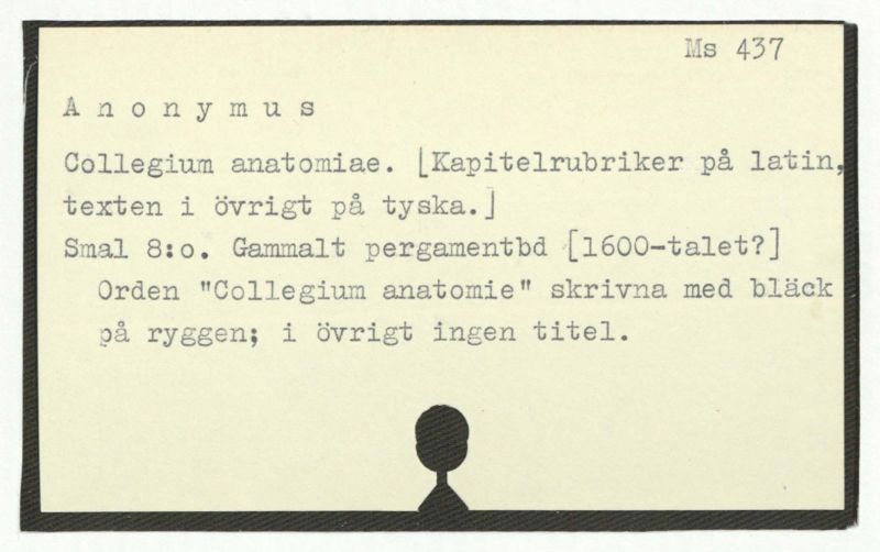 Orden "Collegium anatomie" skrivna med bläck på ryggen; i övrigt ingen titel.