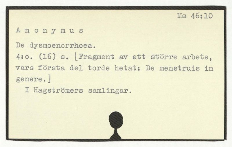 4:o. (16) s. [Fragment av ett större arbete, vars första del torde hetat: De menstruus in genere.]