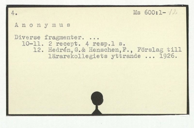 12. Hedrén, G.& Henschen, F., Förslag till lärarekollegiets yttrande ... 1926.