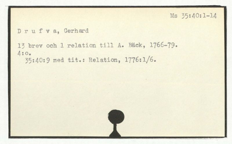 13 brev och 1 relation till A. Bäck, 1766-79.