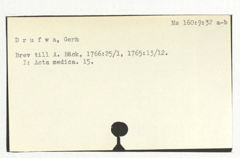 Brev till A. Bäck, 1766:25/1, 1765:13/12.