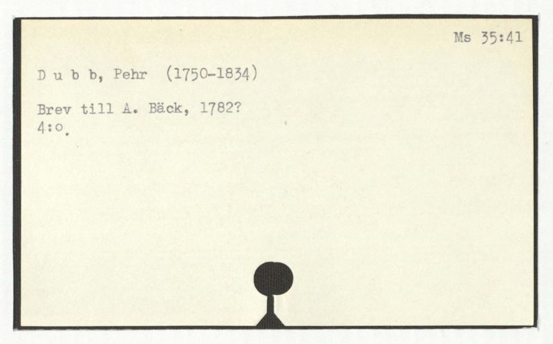 Brev till A. Bäck, 1782?