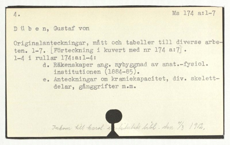 4. Åtskilliga folkslag. Kraniemått ur diverse samlingar (otryckt).