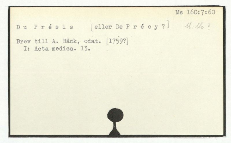 Du Présis [eller De Précy?] M:le?