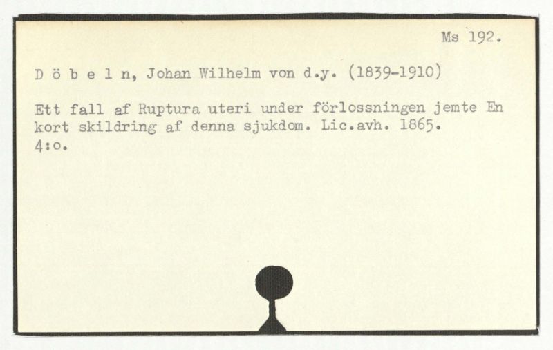 kort skildring af denna sjukdom. Lic.avh. 1865.