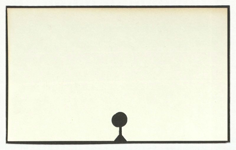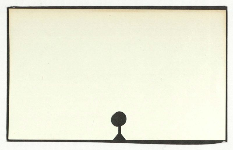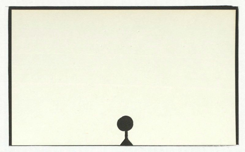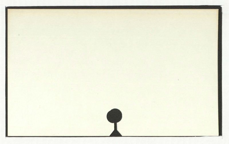 Thereisnotextpresentintheimage. Theimageconsistsofablackrectangularborder, a light-colored interior, and a simple black silhouette of a figure at the bottom.