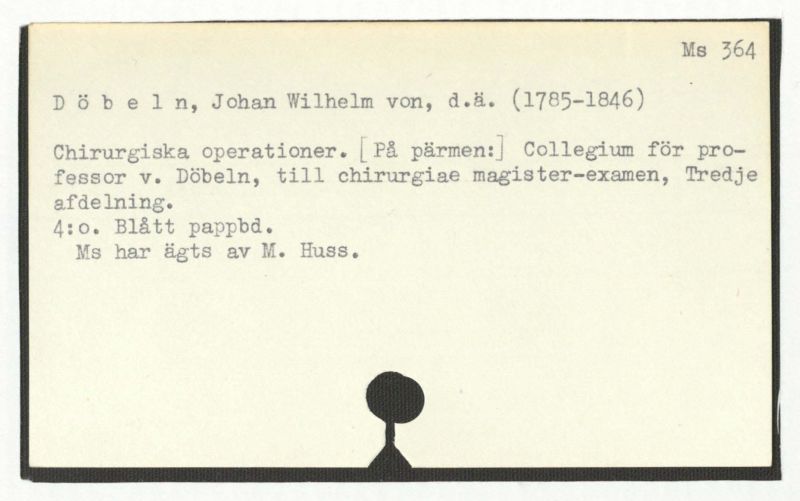 Chirurgiska operationer. [På pärmen:] Collegium för professor v. Döbeln, till chirurgiae magister-examen, Tredje afdelning.