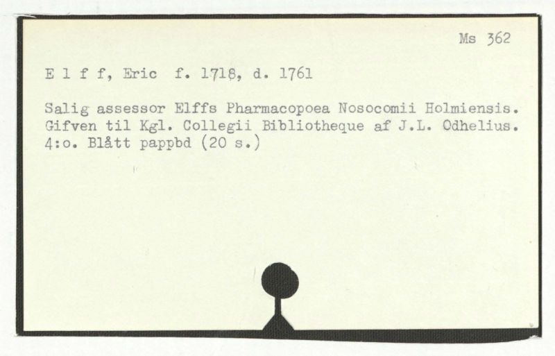 Salig assessor Elffs Pharmacopeea Nosocomii Holmiensis.