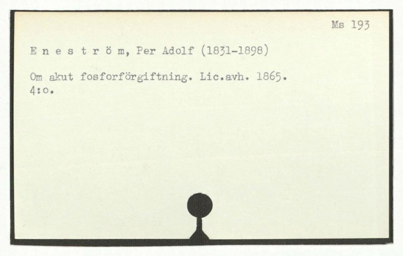 Om akut fosforförgiftning. Lic. avh. 1865.