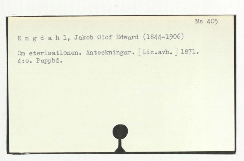 Om eterisationen. Anteckningar. [Lic. avh.] 1871.