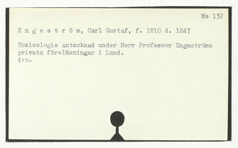 Toxicologie antecknad under Herr Professor Engeströms privata föreläsningar i Lund.