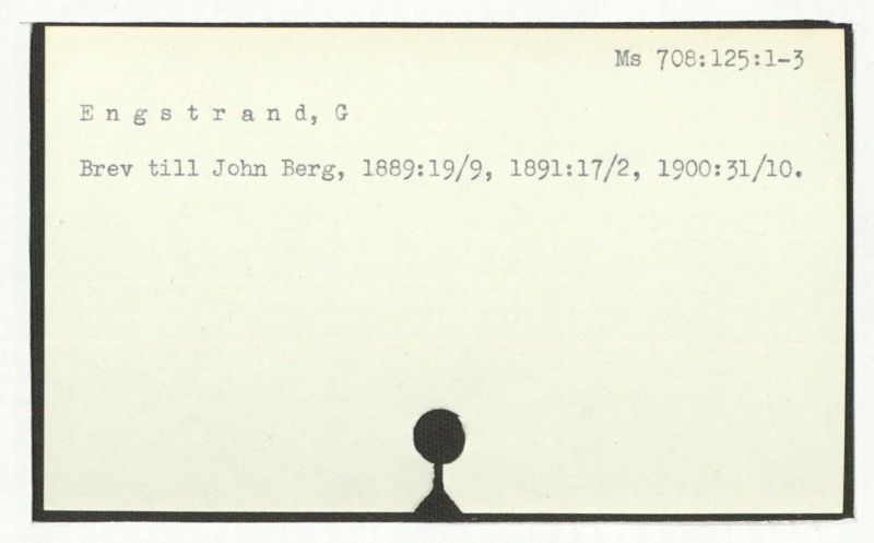 Brev till John Berg, 1884:24/1, 1892:8/3, 30/3, 26/10, 1901:14/10.