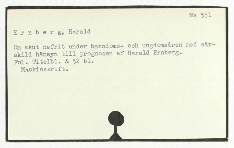 Om akut nefrit under barndomsoch ungdomsåren med särskild hänsyn till prognosen af Harald Ernberg.