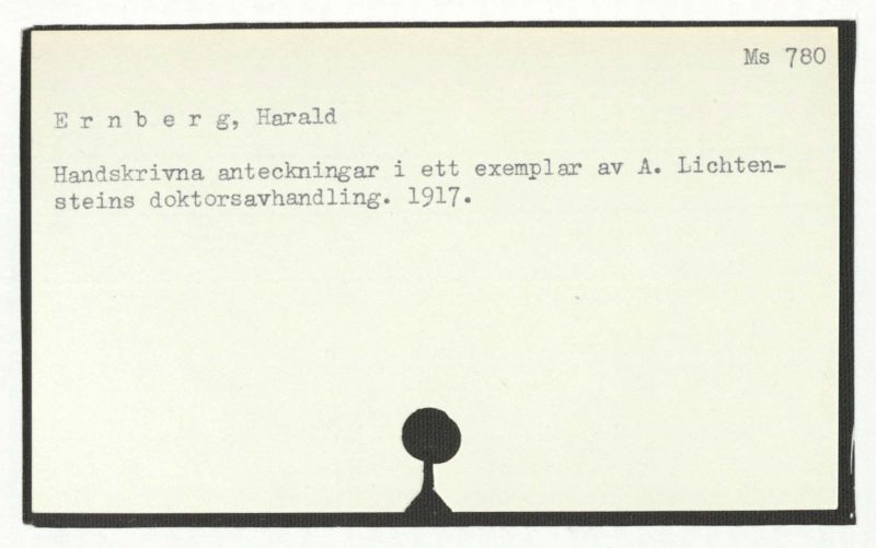 Handskrivna anteckningar i ett exemplar av A. Lichtensteins doktorsavhandling. 1917.