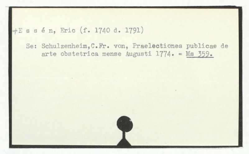 Se: Schulzenheim,C.Fr. von, Praelectiones publicae de arte obstetrica mense Augusti 1774. = Ms 359.