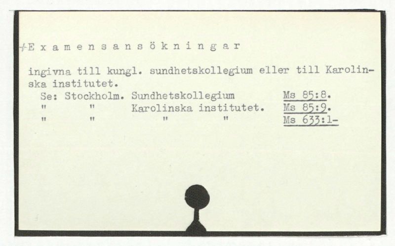 ingivna till kungl. sundhetskollegium eller till Karolinska institutet.