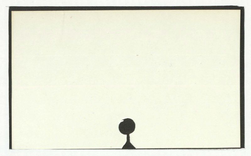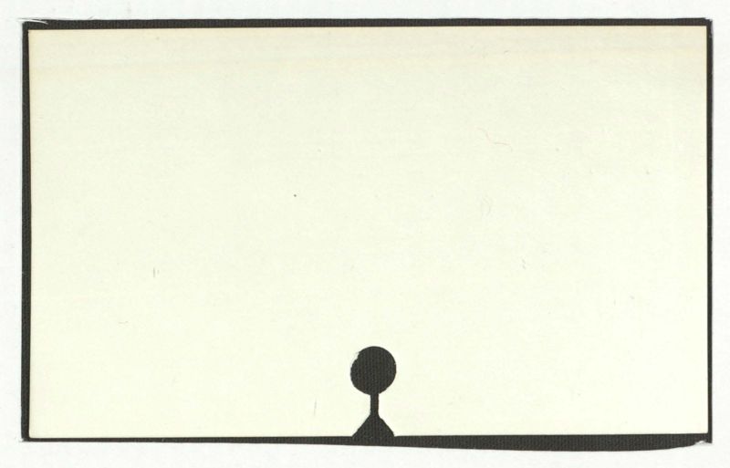 Thereisnotextpresentintheimage. Theimageconsistsofaminimalistdesignfeaturingablacksilhouetteagainstalightbackgroundwithinablackrectangularborder, with no written characters or textual elements.