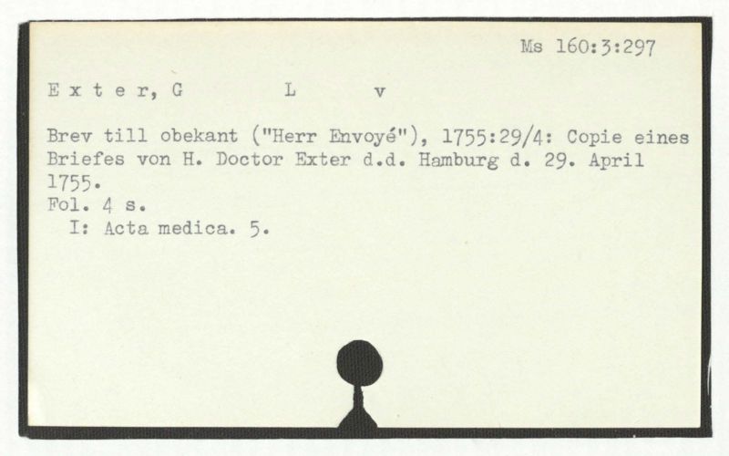 Brev till obekant ("Herr Envoyé"), 1755:29/4: Kopie eines Briefes von H. Doctor Exter d.d. Hamburg d. 29. April 1755.